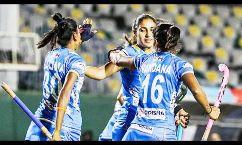 सोमवारच्या सामन्यातील विजयामुळे भारतीय महिला संघाने आशिया चषक हॉकी स्पर्धेची उपांत्य फेरी गाठली तसेच 2022 च्या आंतरराष्ट्रीय हॉकी फेडरेशनच्या स्पेन आणि हॉलंड यांच्या संयुक्त यजमानपदाने होणाऱया महिलांच्या विश्वचषक हॉकी स्पर्धेतील आपले स्थानही निश्चित केले आहे. सोमवारी झालेल्या अ गटातील शेवटच्या सामन्यात भारताच्या खेळाडूंनी सिंगापूरवर गोलांचा भडीमार केला. भारतीय संघातील गुरजित कौरने शानदार हॅट्ट्रीक नोंदवताना आठव्या, 37 व्या आणि 48 व्या मिनिटाला असे तीन गोल नोंदविले. मोनिकाने सहाव्या आणि 17 व्या मिनिटाला त्याचप्रमाणे ज्योतीने 43 आणि 58 व्या मिनिटाला असे प्रत्येकी दोन गोल केले. वंदना कटारियाने आठव्या मिनिटाला तर मारिना कुजूरने 10 व्या मिनिटाला प्रत्येकी एक गोल केला. सिंगापूरतर्फे एकमेव गोल ली मिन तोहने 43 व्या मिनिटाला नोंदविला.