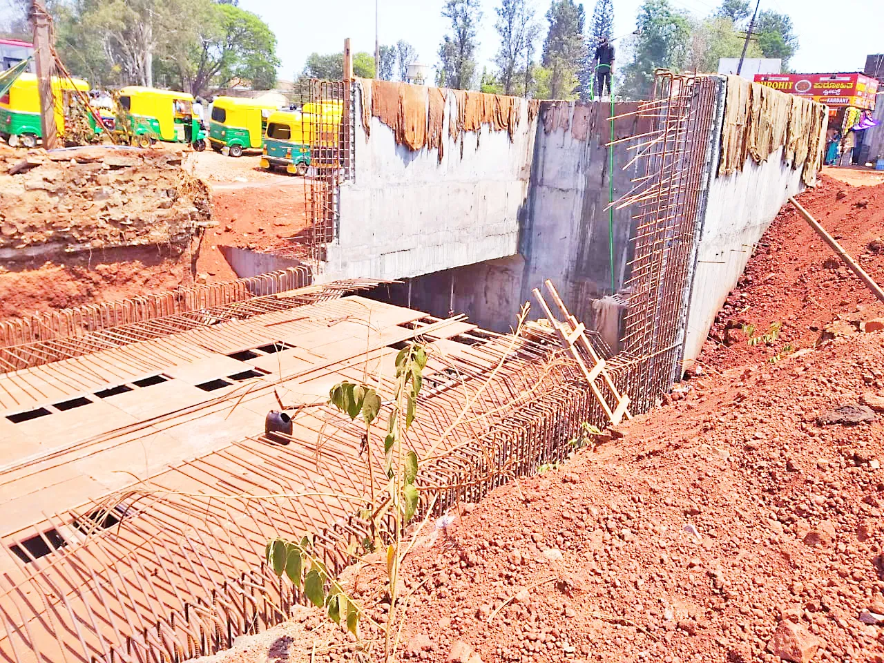 मध्यवर्ती बसस्थानक व सीबीटी बसस्थानक यांना जोडण्यासाठी बसस्थानकाच्या मुख्यमार्गावर भुयारी मार्गाची उभारणी करण्यात येत आहे. गतवषी कोरोनामुळे भुयारी मार्गाचे काम अर्धवट स्थितीत राहिले होते. या कामाला पुन्हा सुरुवात करण्यात आली आहे. बसस्थानक परिसरातील वाहतुकीची कोंडी कमी करण्याच्या दृष्टिकोनातून या भुयारी मार्गाची उभारणी करण्यात येत आहे. मात्र अद्यापही निम्मे काम शिल्लक आहे.