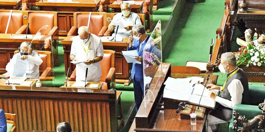 राज्य सरकारने कोरोना परिस्थितीमुळे शनिवारपर्यंत अधिवेशन घेण्यात येणार आहे. दरम्यान मंगळवारी विधानसभेमध्ये 12 विधेयके मांडण्यात आली आहेत. त्यामध्ये भू-सुधारणा दुरुस्ती विधेयक, कर्नाटक लोकायुक्त दुरुस्ती कायदा, कर्नाटक भिक्षा निर्बंध दुरुस्ती विधेयक या महत्त्वपूर्ण विधेयकांचा समावेश आहे. बुधवारपासून या विधेयकांवर चर्चा होणार आहे.