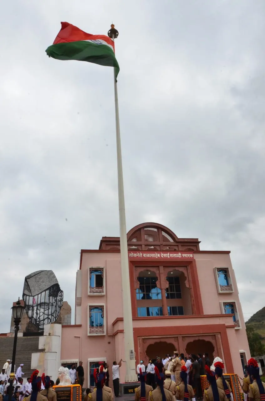 सातारा : लोकनेते बाळासाहेब देसाई शताब्दी स्मारक दौलतनगर (मरळी) येथे उभारण्यात आलेल्या शंभर फुटी ध्वजाचे लोकार्पण नगरविकास मंत्री एकनाथ शिंदे यांच्या हस्ते करण्यात आले.