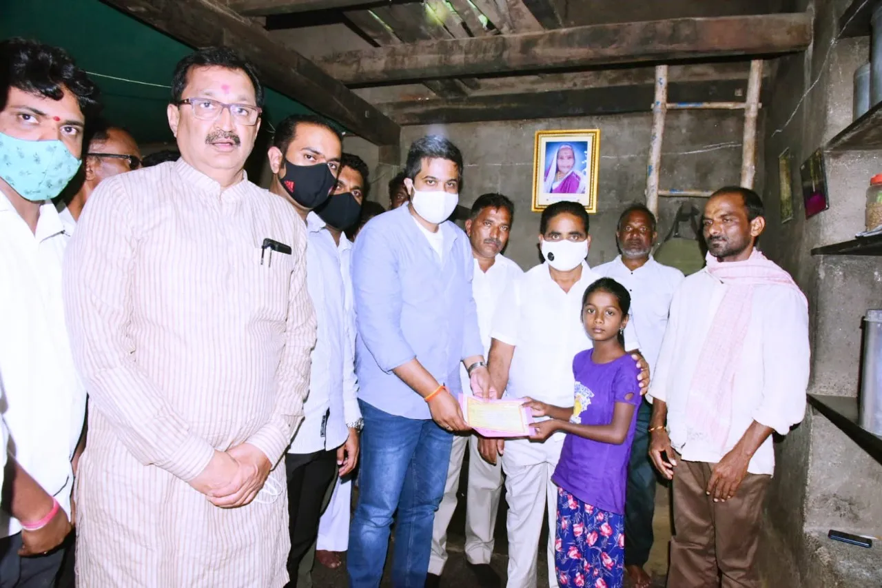 याबाबत अधिक माहिती अशी, आठवड्यापूर्वी कपडे धुण्यासाठी गेल्यावर अकरा केव्ही उच्च दाबाची वीजवाहिनी अंगावर पडून सौ. गीता गौतम जाधव, वय -३२ व कु. हर्षवर्धन गौतम जाधव, वय -१२ या मायलेकरांचा दुर्दैवी मृत्यू झाला होता. थोड्याच अंतरावर असलेली कु. भक्ती ही अवघ्या आठ वर्षांची चिमुकली सुदैवाने बचावली होती. या दुर्घटनेच्या दुसऱ्याच दिवशी मंत्री श्री. मुश्रीफ यांनी या कुटुंबीयांचे सांत्वन करून आकस्मिक मदतीसह भक्तीच्या उच्च शिक्षणाची जबाबदारी घेतली. त्यानुसार मंत्री हसन मुश्रीफ फाऊंडेशनच्यावतीने एक लाख रुपयांची ठेव केडीसीसी बँकेत ठेवून ठेव पावती देण्यात आली. दामदुप्पट ठेवीची रक्कम दोन लाख होणार आहे.