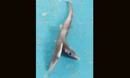 पालघर सातपाटी येथील मच्छीमार नितीन पाटील यांना समुद्रात मासेमारी करताना जाळ्य़ात दुहेरी डोक्यांचा दुर्मिळ शार्क सापडल्याची घटना नुकतीच घडली आहे. महाराष्ट्राच्या किनारपट्टीवरून ही पहिलीच घटना नोंदली गेली असल्याचे सेंट्रल मरिन फिशरिज रिसर्च इन्स्टिटय़ूटच्या शास्त्रज्ञांनी स्पष्ट केले आहे. तर अशा प्रकारची दुर्मिळ मत्स्य संपदा जाळ्य़ात अडकल्यास मच्छीमारांनी मत्स्य तज्ञांशी संपर्क साधावा, असे आवाहन शास्त्रज्ञांनी केले आहे.