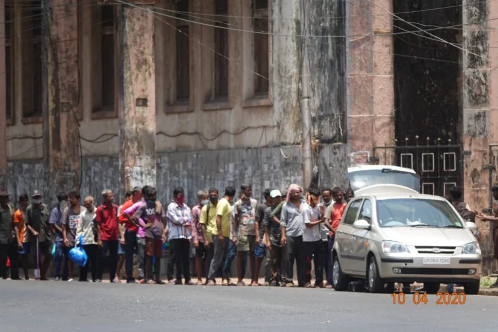 मडगाव पालिका चौकात बिगरसरकारी संस्थेतर्फे मजुरांच्या जेवणाची सोय करण्यात येत असते. गाडी घेऊन येऊन ते जेवणाची पार्सल्स या मजुरांना देत असतात. मजूर रांगेत उभे राहत असले, तरी त्यांच्यात अंतर राहत नसल्याने सोशल डिस्टन्सिंग बाजूलाच राहत असते. त्यामुळे या मजुरांमुळे कोरोनाचा फैलाव होण्याची भीती व्यक्त करण्यात येत आहे.