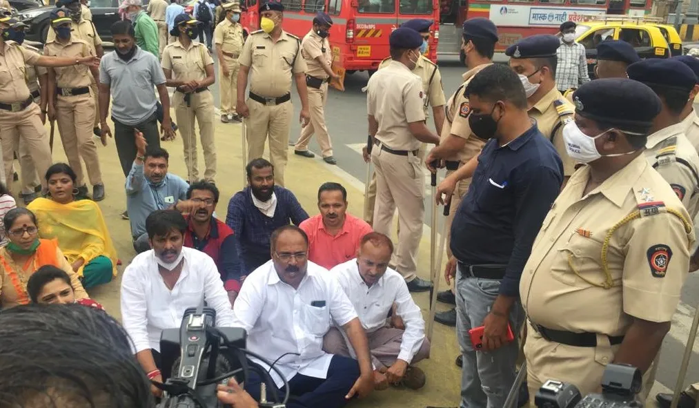 मराठा क्रांती मोर्चाचे राज्य समन्वयक दिलीप पाटील, सचिन तोडकर, सकल मराठा कोल्हापूरचे समन्वयक प्रसाद जाधव, प्रकाश सरनाईक यांच्या नेतृत्वाखाली कोल्हापूरातून रविवारी मध्यरात्री दोनशेहून अधिक मराठा आंदोलक गनिमीकाव्याने मुंबईत पोहोचण्यात यशस्वी झाले. दुपारी चारच्या सुमारास हे आंदोलक `सीएसटी’ येथे एकत्र जमले. या ठिकाणी `सरकारने नोकर भरतीला स्थगिती द्यावी’ यासह `एक मराठा लाख मराठा’, ‘आरक्षण आमच्या हक्काचं’ अशा घोषणा ठिय्या मारला. या ठिकाणी घोषणाबाजी करत आंदोलकांनी परिसर दणाणून सोडला. येथे भाजपचे आमदार नीतेश राणे यांनी भेट देऊन आंदोलनाला पाठींबा दिला. काही वेळातच या ठिकाणी पोलीस दाखल झाले. अचानक झालेल्या या आंदोलनाने पोलीसांचीही तारांबळ उडाली. यानंतर आंदोलकांनी विधानभवनावर धडक मारण्यासाठी कूच केली. काही अंतर चालून गेल्यावर पोलीसांनी आंदोलकांना ताब्यात घेतले. त्यांना पोलीस व्हॅनमध्ये घालताना झटापट होऊन धुमश्चक्री उडाली.