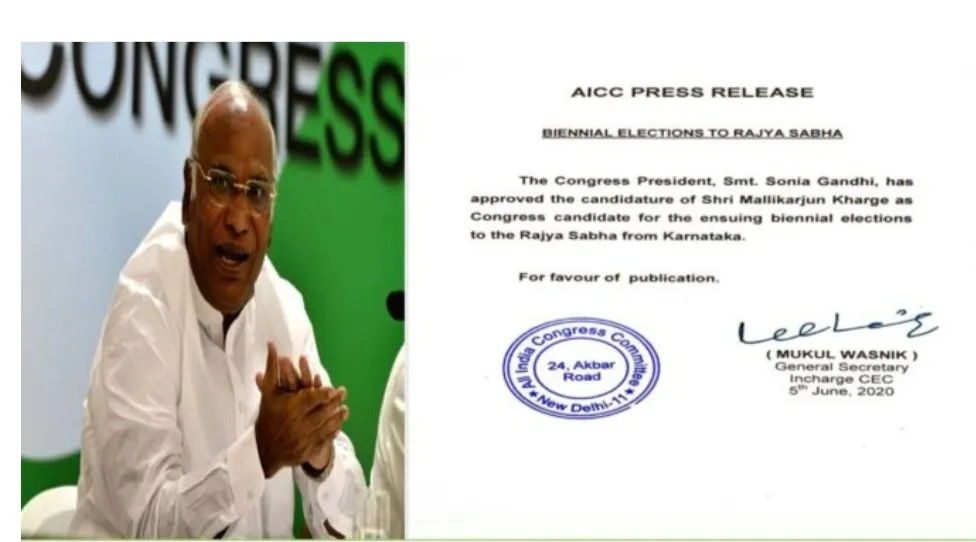 खर्गे यांचा 2019 च्या लोकसभा निवडणुकीत पराभव झाल्याने त्यांना राज्यसभेवर संधी देण्यात आली आहे.