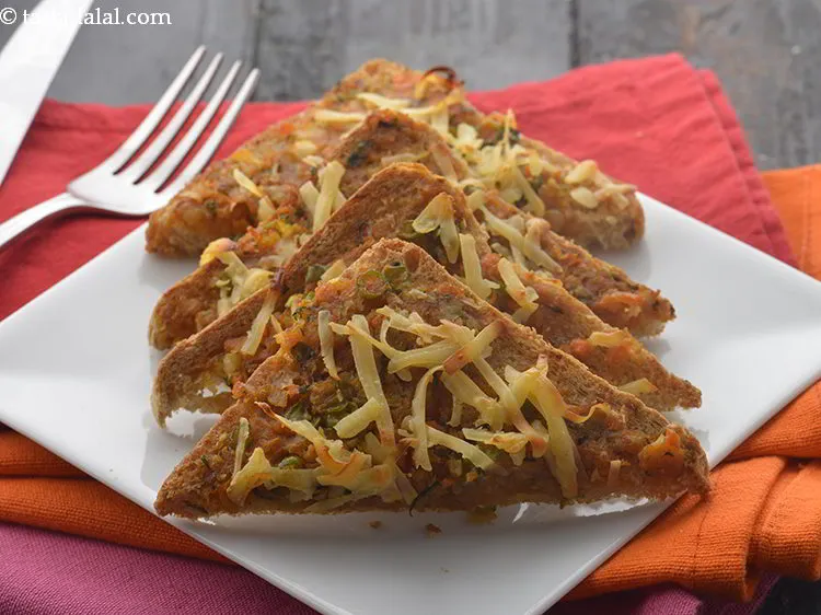 साहित्य : टॉपिंगसाठीः दीड चमचा तेल, पाव वाटी बारीक चिरलेला कांदा, अर्धा चमचा आलं-लसूण पेस्ट, अर्धी वाटी बारीक चिरलेली भाजी (कोबी, फ्लावर, गाजर, बीन्स), 1 बटाटा वाफवून मॅश केलेला, अर्धा चमचा लाल तिखट पावडर, अर्धा चमचा लिंबूरस, 2 चमचे बारीक चिरलेली कोथिंबीर, चवीपुरते मीठ, इतरः 4 गव्हाचे ब्रेड स्लाईस, 4 चमचे बटर, 4 चमचे चीज, टोमॅटो केचप