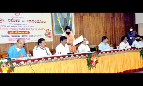 महापालिका कार्यालयात सोमवारी विकास आढावा बैठक आयोजित करण्यात आली होती. जिल्हा पालकमंत्री रमेश जारकीहोळी यांच्या अध्यक्षतेखाली झालेल्या बैठकीवेळी महापालिका आयुक्त जगदीश के. एच. यांनी महापालिकेच्या विकास कामाचा आढावा मांडला. मागील वर्षात महापालिकेला अनुदान मिळाले नसल्याने प्रलंबित कामे पूर्ण करण्यावर भर देण्यात आला आहे. बहुतांश विकास कामांचा समावेश स्मार्ट सिटी योजनेत करण्यात आल्याने शासनाकडुन मनपाला विशेष अनुदान देण्यात आले नव्हते. त्यामुळे मनपाकडे उपलब्ध असलेल्या निधीमधून विकास कामे राबवावी लागली. तसेच मनपाची आर्थिक परिस्थिती बिकट असल्याने विकास कामे राबविण्यात आली नाहीत. त्यामुळे विकास आढावा मांडण्याची गोची झाली होती. या कारणास्तव मागील 3 वर्षात एसएफसी अनुदान, 13 आणि 14 वा वित्त आयोग अनुदान व 100 कोटी विशेष अनुदानांतर्गत राबविण्यात आलेल्या विकास कामाची माहिती सादर केली. पण यावेळी मनपाच्या आर्थिक स्थितीची माहिती आयुक्तांनी मांडली नाही. त्याचप्रमाणे मनपाच्या अर्थसंकल्पाची माहिती सादर केली नसल्याने महापालिकेच्या कामकाजाबद्दल जिल्हा पालकमंत्री रमेश जारकीहोळी यांनी नाराजी व्यक्त केली. मनपाच्या कामाबाबत असमाधानी असून, पुढील बैठकीत विकास कामाची सविस्तर माहिती सादर करावी, अशी सूचना महापालिका आयुक्तांना केली.