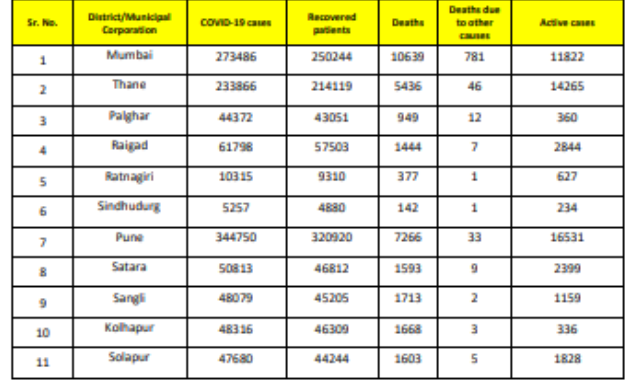 प्रयोगशाळेत आतापर्यंत तपासणीसाठी पाठविण्यात आलेल्या 1 कोटी 00 लाख 35 हजार 665 नमुन्यांपैकी 17 लाख 68 हजार 272 रुग्णांचे रिपोर्ट पॉझिटिव्ह आले आहेत. सध्या राज्यात 5 लाख 58 हजार 090 लोक होम क्वारंटाईनमध्ये असून, 4 हजार 833 लोक संस्थात्मक क्वारंटाईनमध्ये आहेत.