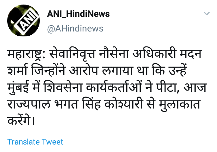 दरम्यान, मदन शर्मा यांना झालेली मारहाण आणि सध्या गाजत असलेले कंगना रानौत प्रकरणावरून विरोधकांकडून शिवसेनेला लक्ष्य केले जात आहे. त्यामुळे आता मदन शर्मा यांनी राज्यपालांची भेट घेतल्यानंतर शिवसेनेची काय भूमिका असेल याकडे सर्वांचे लक्ष लागले आहे.