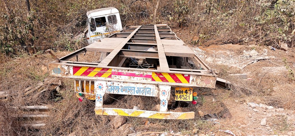 रविवारी रात्रौ 11 वाजता मालवाहू कंटेनर मालपे येथे सर्व्हिस रोड वरून मालपे उतरणीवर खोल क?बिनचा दर्शनी भाग कोसळला. चालकाचा गाडीवरचा ताबा गेल्याने हा अपघात झाला.तर मुख्य मागील भाग हा सर्व्हिस रोडवर कोसळला.