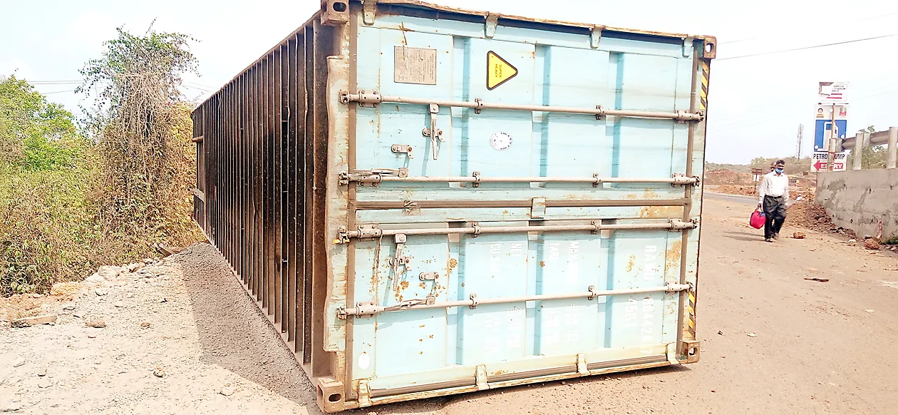 रविवारी रात्रौ 11 वाजता मालवाहू कंटेनर मालपे येथे सर्व्हिस रोड वरून मालपे उतरणीवर खोल क?बिनचा दर्शनी भाग कोसळला. चालकाचा गाडीवरचा ताबा गेल्याने हा अपघात झाला.तर मुख्य मागील भाग हा सर्व्हिस रोडवर कोसळला.