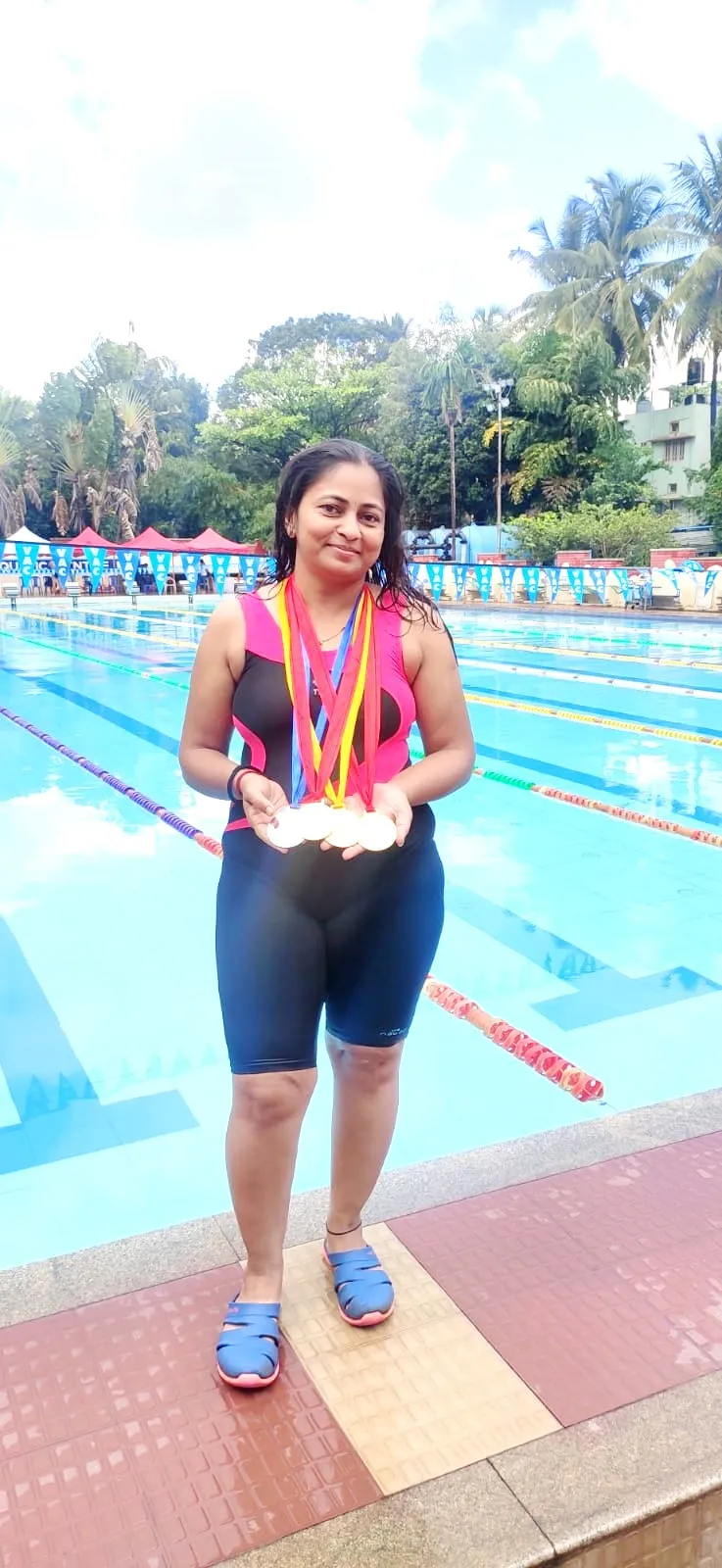 बेळगाव : कर्नाटक राज्य जलतरण संघटना आयोजित 22 व्या राज्यस्तरीय मास्टर जलतरण स्पर्धेत बेळगावच्या आरोग्य खात्यातील कर्मचारी ज्योती होसट्टी यांनी 2 सुवर्ण, 2 रौप्य, 3 कांस्यपदकांसह घवघवीत यश संपादन केले आहे.