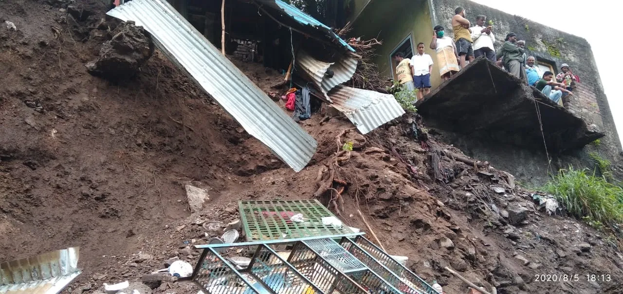 खंदकालगतच्या या घरात टीव्ही, शोकेस, गॅस, भांडय़ाचे कपाट, पलंग, कपडे यासह संसारोपयोगी साहित्य होते. ते सर्व 30 फुट खाली मातीच्या ढिगाऱ्यातत गाडले गेले. त्यामुळे कुरणे यांचे सुमारे दोन लाख रुपयांचे नुकसान झाले आहे. घरातील कपडय़ांसह अंथरुन पांघरुनही ढिगाऱ्याखाली गेल्याने ऐन पावसात कुरणे कुटुंबिय उघडय़ावर पडले आहे.