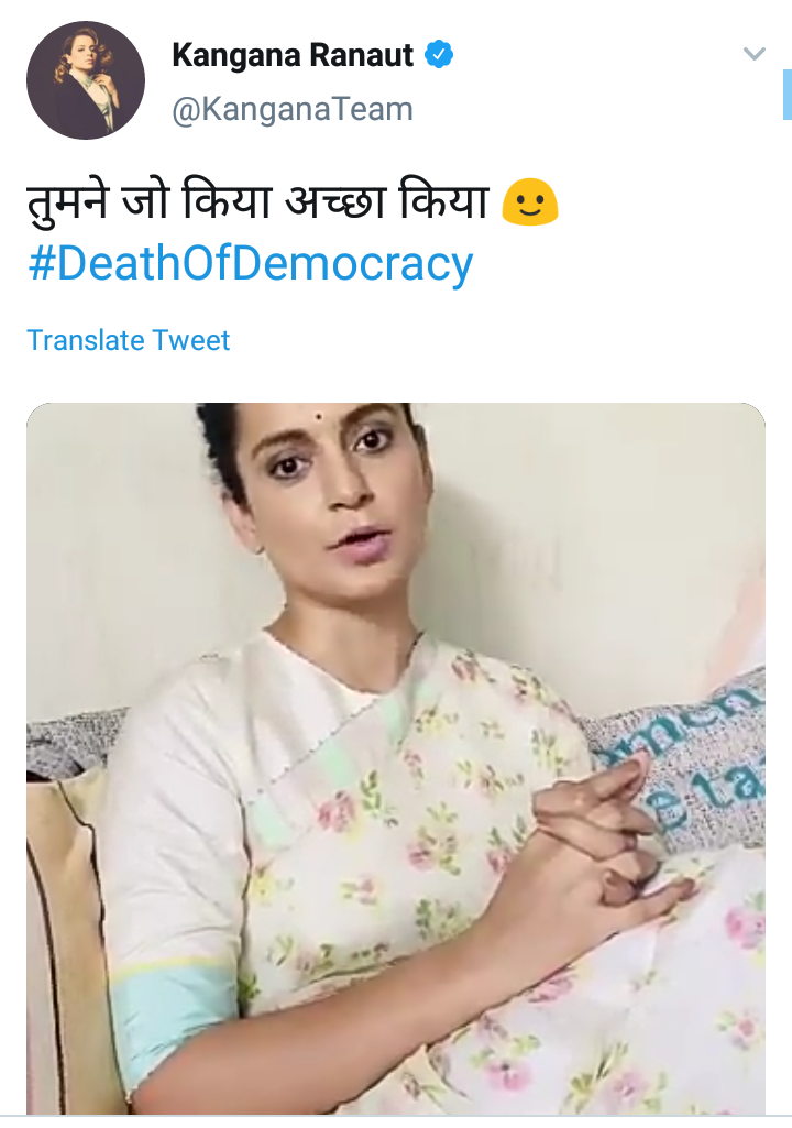 उद्धव ठाकरे आज तुम्ही माझे घर तोडले आहे उद्या तुमचे गर्वहरण होईल. वेळ नेहमी एकसारखी नसते. हे करून तुम्ही माझ्यावर उपकार केले. काश्मिरी पंडितांवर काय संकट आलं असेल हे माहीत होते. परंतु आज मी ते स्वतः अनुभवले. आज मी देशाला वचन देते की, मी फक्त अयोध्येवरच नाही.. तर काश्मिरी पंडितांवरही चित्रपट तयार करणार. जय हिंद जय महाराष्ट्र… असे कंगनाने व्हिडीओमध्ये म्हटले आहे.
