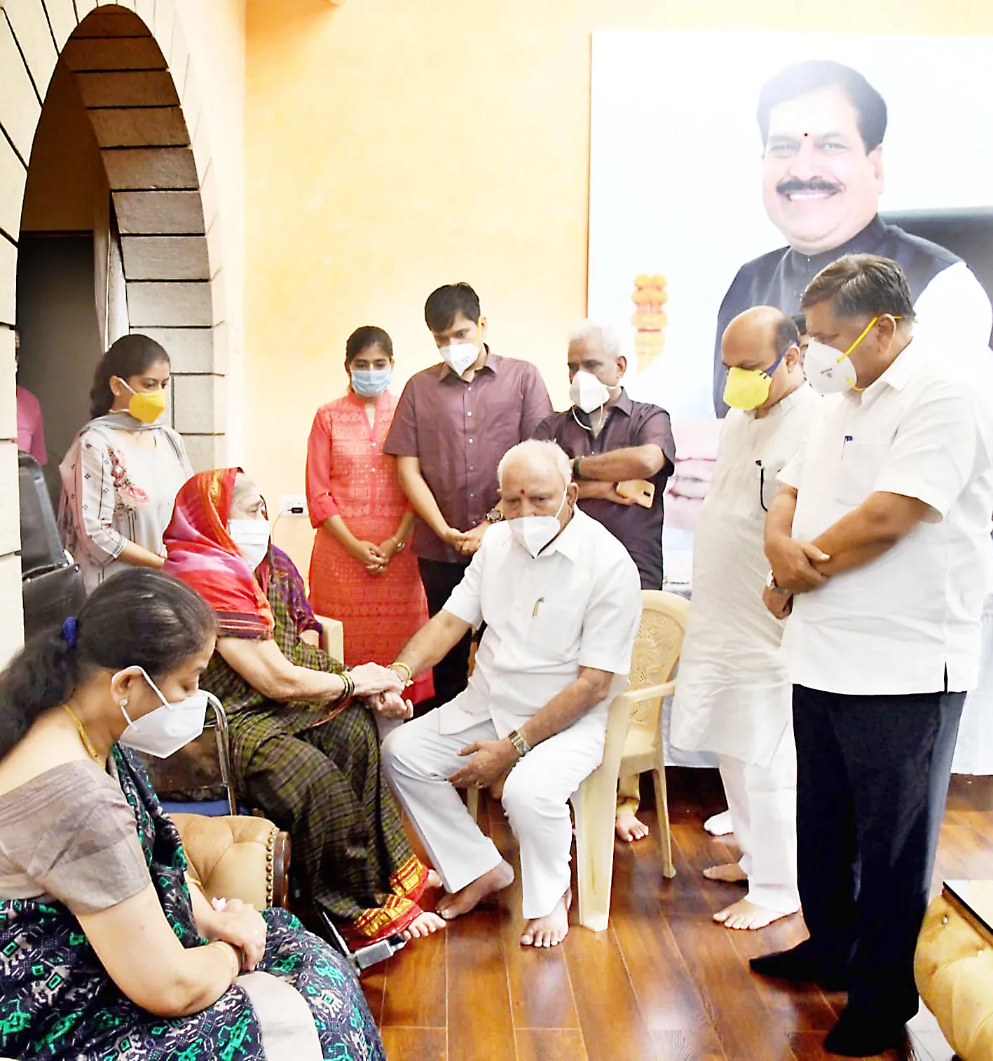 केंद्रीय रेल्वे राज्यमंत्री सुरेश अंगडी यांच्या कुटुंबीयांचे बुधवारी मुख्यमंत्री बी. एस. येडियुराप्पा यांनी सांत्वन केले. ते आज आपल्यात नाहीत, हेच आपल्याला सहन होत नाही. अशा शब्दात मुख्यमंत्र्यांनी दु:ख व्यक्त केले आहे.