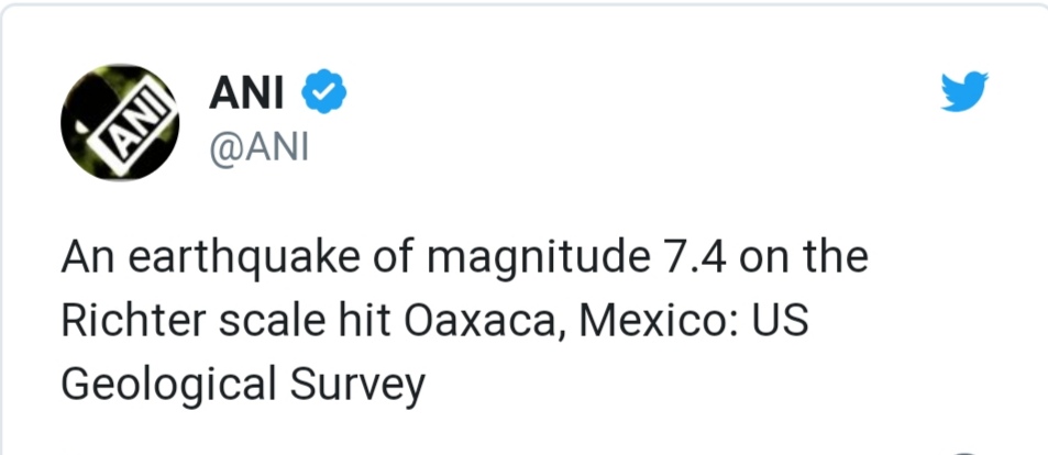 मेक्सिको आणि मेक्सिकोच्या काही भागात मंगळवारी सकाळी भूकंपाचे तीव्र धक्के जाणवले. या भूकंपाची तीव्रता 7.4 रिश्टर स्केल एवढी होती. या भूकंपानंतर मेक्सिको, दक्षिणी मेक्सिको, ग्वाटेमाला, अल साल्वाडोर आणि होंडुरासमध्ये त्सुनामी येऊ शकते, असे अमेरिकेच्या त्सुनामी मॉनिटरिंग सिस्टमने म्हटले आहे.