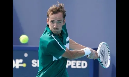 एटीपी टूरवरील येथे सुरू असलेल्या मियामी खुल्या मास्टर्स पुरूषांच्या आंतरराष्ट्रीय टेनिस स्पर्धेत रशियाचा टॉप सीडेड मेदव्हेदेव, अमेरिकेचे जॉन इस्नेर आणि फ्रान्सेस टायफो यांनी चौथ्या फेरीत प्रवेश मिळविला.
