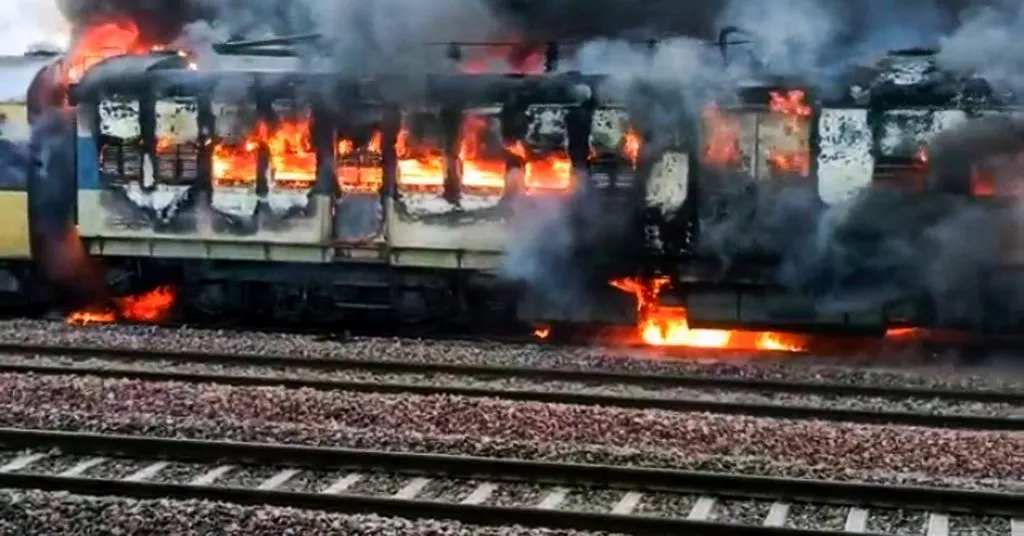 ः उत्तर प्रदेशमध्ये शनिवारी सकाळी एका प्रवासी रेल्वेच्या इंजिन आणि दोन डब्यांना आग लागली. ही दुर्घटना मेरठ शहरापासून 18 किमी अंतरावर घडली. यादरम्यान सुदैवाने प्रवाशांनी उडी मारून जीव वाचवल्यामुळे जीवितहानी टळली. मात्र, एका बोगीमधील प्रवाशांचे साहित्य आगीत बेचिराख झाले.