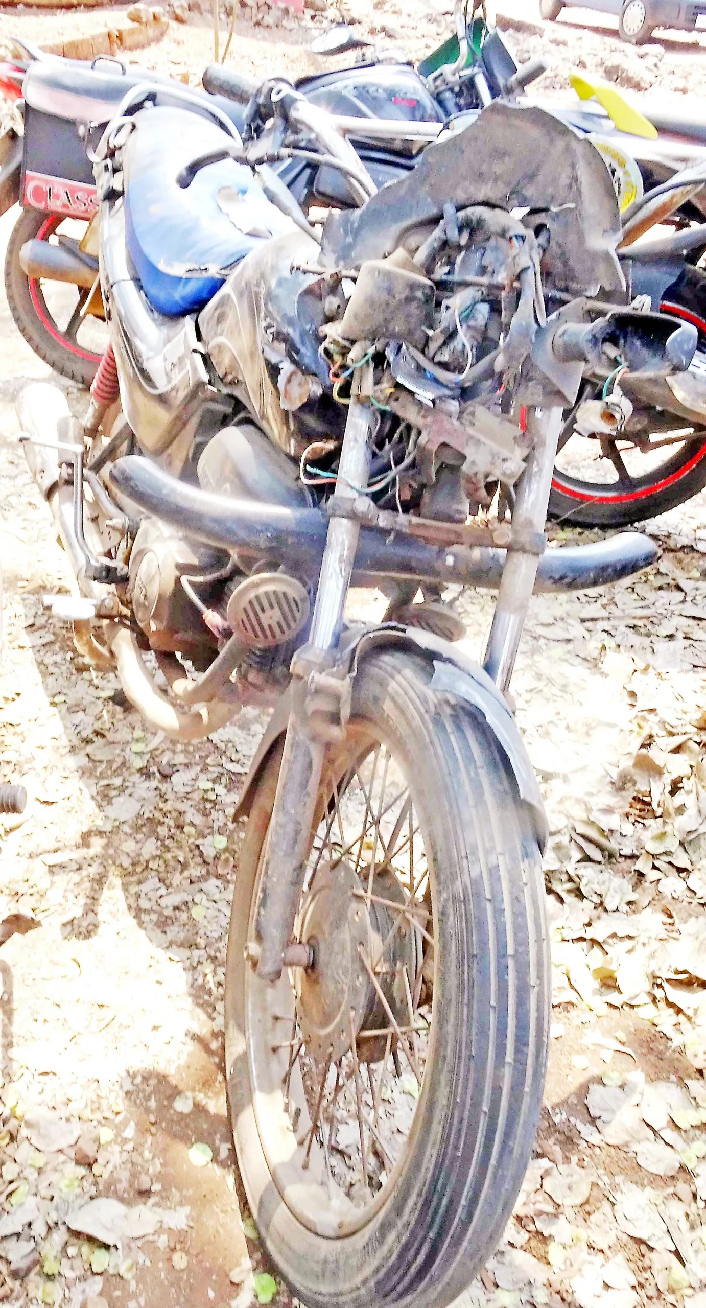 यामुळे भरधाव मोटारसायकलीची कठडय़ाला जोराची धडक बसली. यात मोटारसायकलीसह चौघेही नजीकच्या खड्डय़ात कोसळले. या भीषण अपघातात बसू, मेहबूब आणि प्रविण हे तिघेही जागीच ठार झाले.
