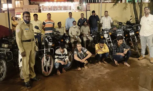 शहर व उपनगरांत मोटार सायकली चोरीच्या घटना वाढल्या आहेत. या पार्श्वभूमिवर पोलिसांनी दुचाकी चोरांचा माग काढण्याचा प्रयत्न केला असता ही चौकडी मार्केट पोलिसांच्या जाळय़ात अडकली आहे. त्यांनी वेगवेगळय़ा भागातुन चोरलेल्या आठ दुचाकी जप्त करण्यात आल्या असून पोलीस आयुक्त डॉ. के. त्यागराजन यांनी या कारवाईचे कौतुक केले आहे.