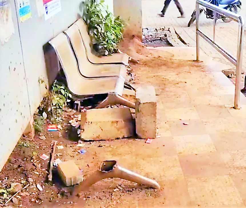जुना धारवाड रोड येथील जिजामाता चौकातील बसथांब्यातील आसनाची दुरवस्था झाली आहे. दगडांचा टेकू देऊन ठेवण्यात आलेल्या आसनावर प्रवाशांना बसावे लागत आहे. काही खुर्च्यांची मोडतोड करण्यात आली आहे. तसेच राणी चन्नम्मा चौकातील काही बसथांब्यांची दुरवस्था झाली असल्याने स्मार्ट शहरात अशा प्रकारचेही बसथांबे असल्याचे पाहून सखेद आश्चर्य व्यक्त करण्यात येत आहे.