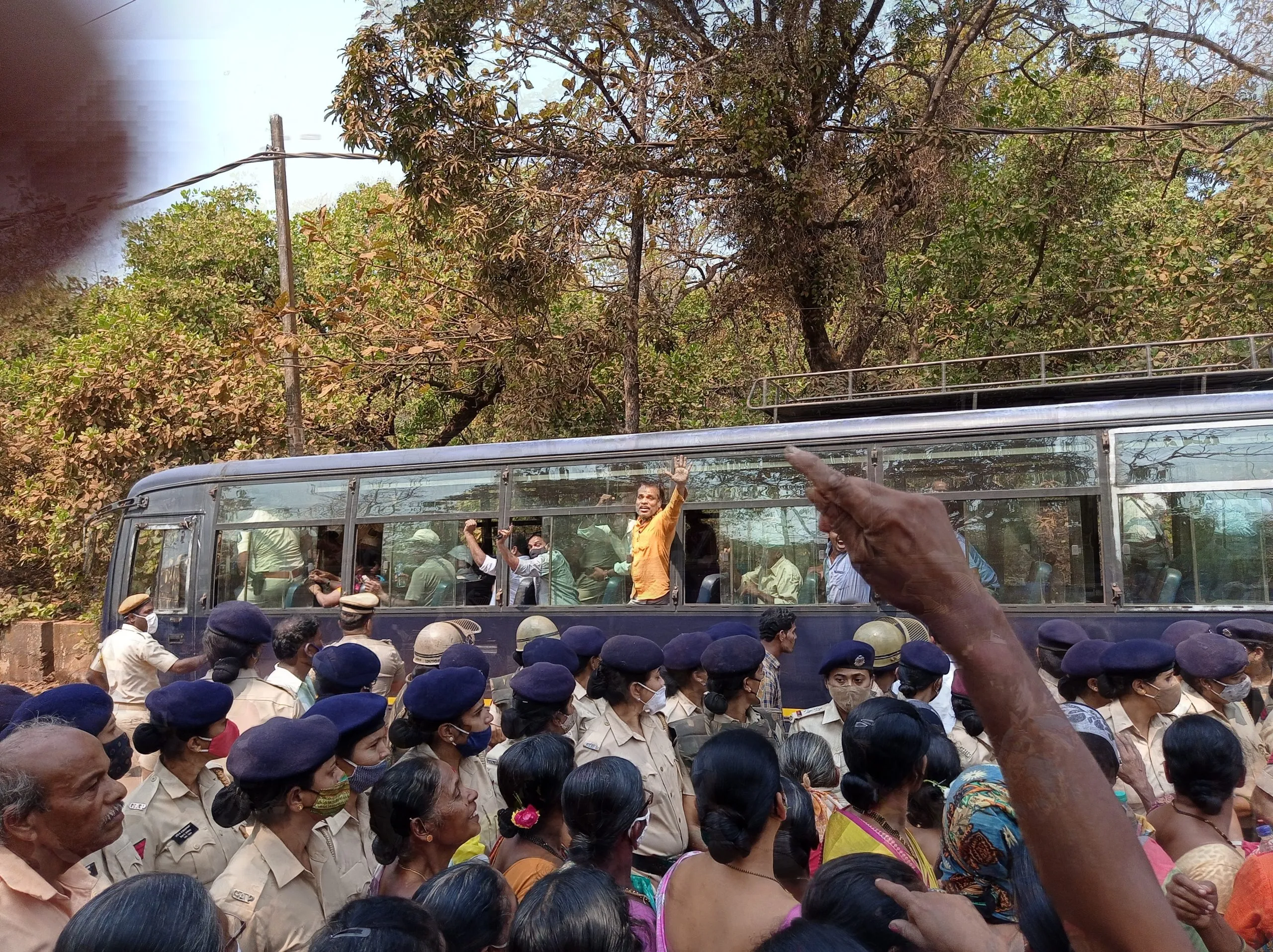 आंदोलनात सहभागी झालेले गोवा फॉरवर्ड पक्षाचे पेडणेचे नेते वकील जितेंद्र गावकर, गोवा सुरक्षा मंचचे विनायक च्यारी, धारगळचे माजी जिल्हा पंचायत सदस्य तुकाराम हरमलकर, मगोचे नेते प्रवीण आर्लेकर, संदीप कांबळी, मोपा संघर्ष समितीचे नारायण गडेकर, व शेकडो महिला आंदोलनकर्त्याना अटक करण्यात आली. नंतर त्यांना म्हापसा व हणजुणे पोलीस स्टेशनवर नेण्यात आले.