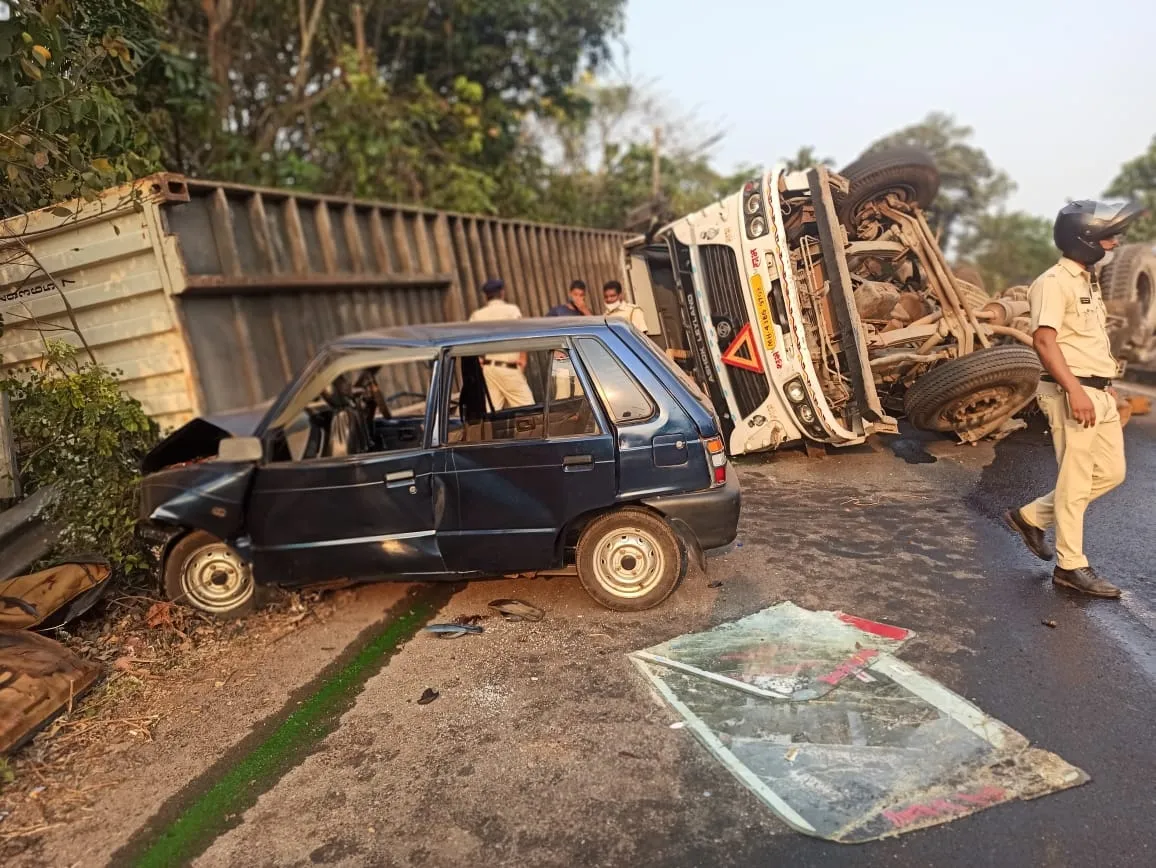 अपघाताची माहिती मिळताच फोंडा पोलीस स्थानकाचे निरीक्षक मोहन गावडे पोलीस फौजफाटय़ासह घटनास्थळी धावले. उपनिरीक्षक रश्मी भाईडकर यांनी मृतदेहाचा तर हवालदार संदीप खाजनकर यांनी घटनेचा पंचनामा केला. महामार्गावरील वाहतूक एकतर्फी मार्गाने वळविण्यात आली. क्रेनच्या साहाय्याने कंटेनर बाजूला काढल्याने साधारण चार तासानंतर वाहतूक पूर्वपदावर आली.