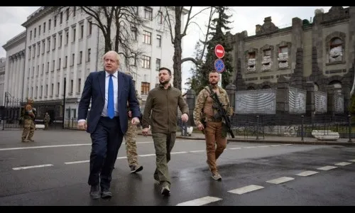 रशियाकडून युक्रेनवर अद्याप मोठय़ा तीव्रतेचे हल्ले सुरूच आहेत. याचदरम्यान ब्रिटनचे पंतप्रधान बोरिस जॉन्सन यांनी युक्रेनचे अध्यक्ष वोल्दोमिर झेलेंस्की यांच्यासोबत एकजूटता दर्शविण्यासाठी युक्रेनचा दौरा केला आहे. दोन्ही नेत्यांदरम्यान शनिवारच्या बैठकीत ब्रिटनकडून युक्रेनला देण्यात येणाऱया दीर्घकालीन समर्थनासह वित्तीय आणि सैन्य सहाय्यासाठी नव्या पॅकेजवर चर्चा झाल्याचे ब्रिटिश पंतप्रधान कार्यालयाकडून सांगण्यात आले.