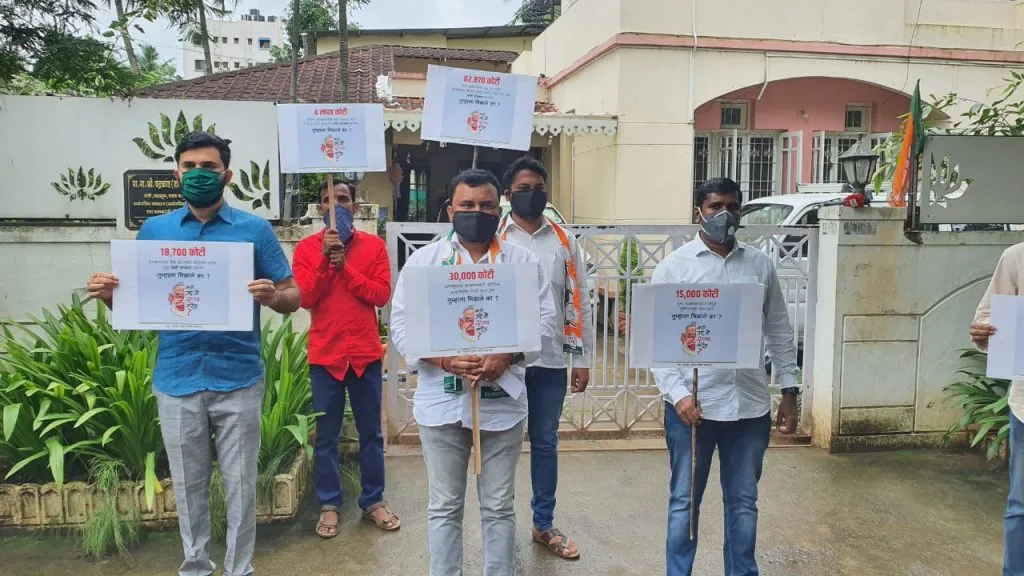 कोरोना महामारीच्या काळात देशभरातील उद्योग धंदे बंद पडले, शेकडो तरुणांचा रोजगार गेला, जनता वैफल्यग्रस्त बनली. रोजी – रोटीचा प्रश्न निर्माण झाला. अशा परिस्थितीत जनतेतून केंद्राकडे मदतीची मागणी होवू लागली. जनतेचा वाढता रोष लक्षात घेवून आत्मनिर्भर या गोंडस नावाखाली स्वत: पंतप्रधान नरेंद्र मोदी यांनी २० लाख कोटी रुपयाचं पॅकेज जाहिर केले. पाच महिने झाले अद्याप मोदी सरकारच्या पॅकेजमधील एक दमडी सुध्दा जनतेच्या हाती पडलेली नाही. या २० लाख कोटी रुपयाचं पॅकेज नेमकं कुठे गेले असा प्रश्न आता सर्व सामान्य जनतेला पडू लागला आहे. हे पॅकेज नेमकं जनतेपर्यंत पोहचल की नाही याची महाराष्ट्र प्रदेश कॉंग्रेसच्या कार्यकर्त्यांनी शहानीशा केली. परंतु ते पोहचले नसल्याचे दिसून आले आहे. ऐवढा मोठा निधी नेमका गेला कुठे,निधी कधी मिळणार? यासाठी महाराष्ट्र प्रदेश युवक कॉंग्रेसच्या कार्यकर्त्यांनी राज्यभर भाजपा पदाधिकाऱ्यांच्या निवास्थानासमोर, कार्यालयासमोर २० लाख कोटी गेले कुठे असे फलक झळकावत मुकं आंदोलन केले. कोल्हापुरातही इंद्रजित साळोखे, कल्याणी माणगावे, ऋषीकेश पाटील यांच्या नेतृत्वाखाली कोल्हापूर जिल्हा युवक कॉग्रेसच्या कार्यकर्त्यांनी भाजपा प्रदेश अध्यक्ष आमदार चंद्रकांत पाटील यांच्या निवास्थानासामोर मुक आंदोलन केले.