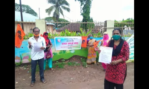 भारतीय मजदूर संघातर्फे जिल्हा रत्नागिरीच्यावतीने असंघटित क्षेत्रातील कामगारांच्या मागण्यांसाठी लढा देण्यात येत आह़े या आंदोलनाच्या माध्यमातूनही संघटनेतर्फे सरकारला जागे करून कामगारांच्या विविध मागण्यांची पूर्तता होण्याचा प्रयत्न सुरू आह़े आंदोलनावेळी जिल्हाधिकाऱयांमार्फत पंतप्रधान नरेंद्र मोदी यांना निवेदन देण्यात आल़े यावेळी भारतीय मजदूर संघ महाराष्ट्र प्रदेश सचिव संजना वाडकर, बांधकाम कामगार महासंघ रत्नागिरी जिल्हाध्यक्ष परशुराम नाचणकर, महिला घरेलू कामगार महासंघ जिल्हाध्यक्ष कांचन गोताड, बांधकाम कामगार महासंघ जिल्हा सचिव ऋतिका पिलणकर, घरेलू महिला कामगार महासंघ जिल्हा सचिव उर्मिला पागी सहभागी झाल्या होत्य़ा