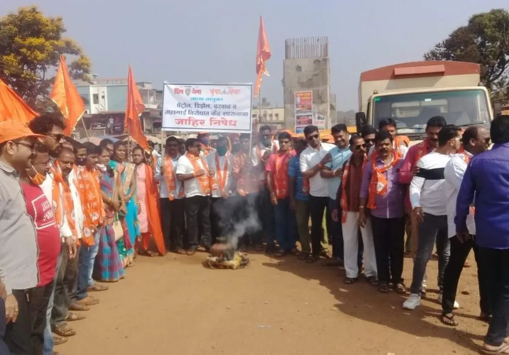 केंद्र सरकारने केलेल्या पेट्रोल व डिझेल दरवाढीच्या विरोधात लांजा तालुका शिवसेना व युवासेना यांच्यावतीने आज शुक्रवारी सकाळी मुंबई-गोवा महामार्गावर लांजा बस स्थानका समोर चूल पेटवून केंद्र शासनाचा जाहीर निषेध व्यक्त करण्यात आला.
