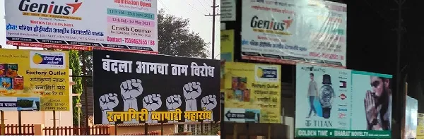 सोशल मीडियावर लॉकडाऊन विरोधात भावना व्यक्त करताना व्यापारी महासंघाने शहरात काही ठिकाणी बॅनर लावले तसेच बुधवारी बंद दुकानाबाहेर हातात फलक घेऊन सनदशीर मार्गाने आंदोलन केले. मात्र, व्यापाऱ्यांचे आंदोलन दाबण्याचा प्रयत्न प्रशासनाकडून सुरू असल्याचा प्रत्यय व्यापाऱ्यांना आला आहे. शहरात अधिकृत लावलेले बॅनर रातोरात काढण्यात आले आहेत. अचानक बॅनर हटवल्याने व्यापाऱ्यांमध्ये संतापाचे वातावरण आहे.