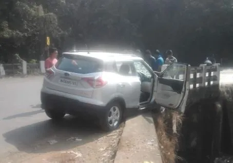 कार चालक परशुराम पुरुषोत्तम ठाकूर रा रत्नागिरी फिनोलॅक्स कॉलनी हे मुंबई हुन रत्नागिरी ला येत होते. ते संगमेश्वरजवळच्या रामकुंड वळणावर आले असता त्यांचा गाडीवरील ताबा सुटला त्यामुळे गाडी पुलाच्या कठड्यावर जावून जोरदार आदळली त्यामुळे गाडीच्या दर्शनीचा भाग चेपला गेला. कार मधील महिला जखमी झाली आहे. तिला उपचारासाठी खाजगी रुग्णालयात दाखल करण्यात आले आहे.