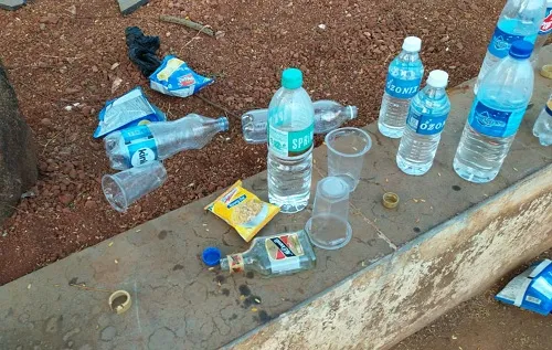 राजापूर शहरातील राजीव गांधी क्रीडांगणाचे सुशोभिकरणाचे काम सुरू असतानाच हे ठिकाण मद्यपींचा अड्डा बनला आहे. रात्रीच्या वेळी याठिकाणी दारूच्या पार्ट्या होत असून दारूच्या बाटल्या, ग्लास, खाद्यपदार्थांच्या पिशव्या त्याच ठिकाणी टाकल्या जात आहेत. त्यामुळे पोलिसांनी रात्रीची गस्त घालून अशा प्रकारांना आळा घालावा, अशी मागणी होत आहे.