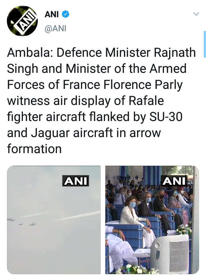संरक्षण मंत्री राजनाथ सिंह आणि फ्रान्सच्या संरक्षण मंत्री फ्लॉरेन्स पार्ली यांच्या उपस्थितीत अंबाला एअरबेस येथे राफेल विमानांचा राज्याभिषेक सोहळा झाला. पारंपरिक पद्धतीने ‘सर्वधर्म पूजन’ करण्यात आले. मुस्लीम, शीख आणि ख्रिस्ती धर्मगुरुंनी प्रार्थना केली. यानंतर सुखोई 30 आणि जॅग्वार विमानांसोबत राफेलची चित्तथरारक हवाई प्रात्यक्षिके दाखविण्यात आली.