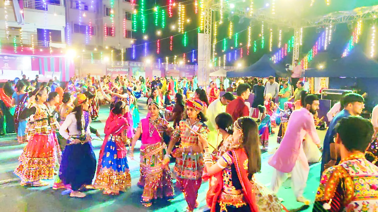 बेळगाव : रिमझिम पावसातही रास दांडियामध्ये पारंपरिक गुजराथी गाण्यांवर तरुणाई थिरकत होती. गोमटेश विद्यापीठाच्या मैदानावर सुरू असलेल्या रास दांडियाला उत्स्फूर्त प्रतिसाद मिळत असून पारंपरिक वेश परिधान करून तरुण-तरुणी गरब्याचा आनंद घेत आहेत.