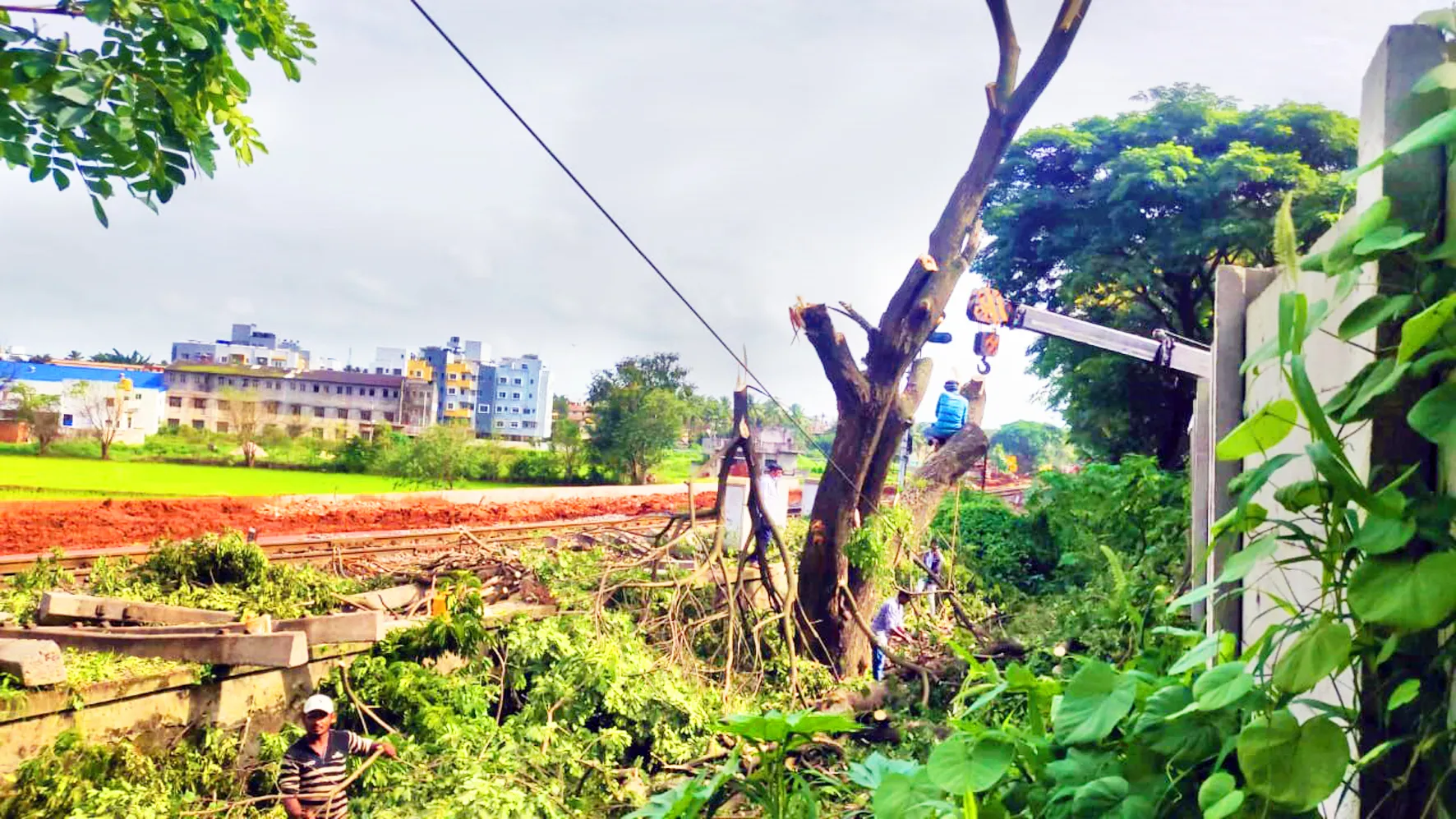 रेल्वे विभागाकडून मार्गाचे दुपदरीकरण व विद्युतीकरण करण्यात येत आहे. यासाठी रेल्वे रुळाच्या बाजूने असलेले वृक्ष तोडले जात आहेत. अनेक वर्षांपासून काँग्रेस रोड येथे हे वृक्ष सावली देत होते. हे वृक्ष तोडण्यास सुरुवात झाल्याने नाराजीचा सूर उमटत आहे.