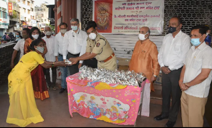 बुधवार पेठेतील कै.श्रीमती लक्ष्मीबाई दगडूशेठ हलवाई दत्तमंदिर ट्रस्टसह लोहिया परिवार संचलित श्री मुकुंद भवन ट्रस्ट, माहेश्वरी समाज श्री राम मंदिर ट्रस्ट रविवार पेठ यांच्यातर्फे अन्नदान व्यवस्था करण्यात आली आहे. अतिरिक्त पोलीस आयुक्त (पूर्व विभाग) डॉ.संजय शिंदे, परिमंडळ १ च्या पोलीस उपायुक्त प्रियांका नारनवरे, स्थायी समिती अध्यक्ष हेमंत रासने यांच्या हस्ते महिलांना जेवणाची पाकिटे देण्यात आली.