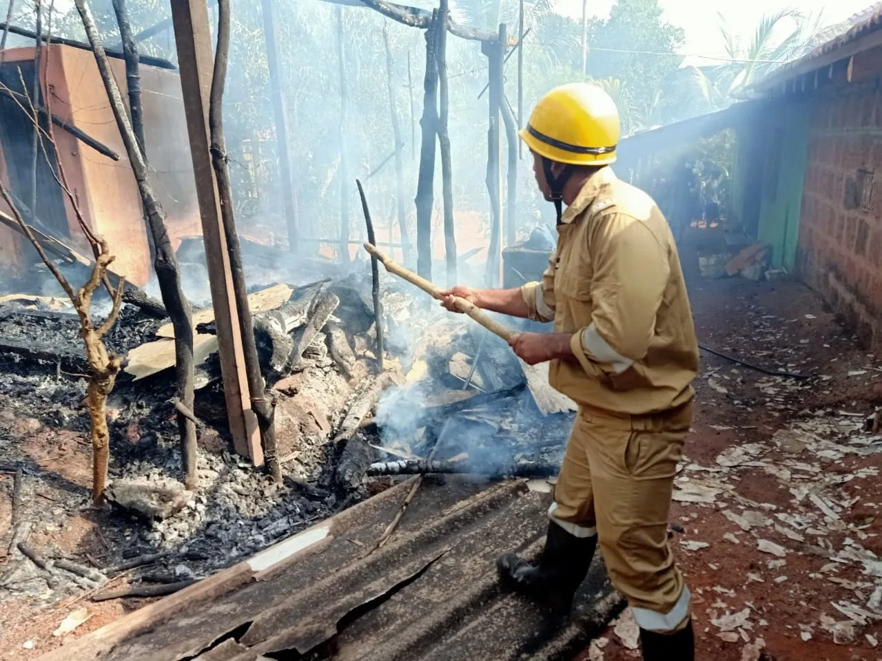 पेडणे अग्निशमन दलाला माहिती मिळताच माहिती मिळताच पेडणे अग्निशमक दलाचे अधिकारी दिलीप गावस, विठ्ठल गावस, मनोज साळगावकर, अविनाश नाईक यांनी घटनास्थळी जाऊन आग विझविली.माञ त्यापूर्वीच या आगीत सर्व लाकडे व मांगर जळून खाक झाला.