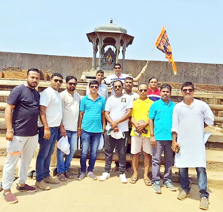 रविवारी सकाळी नऊच्या दरम्यान गडाच्या पायथ्याशी पोहोचल्यावर तिथून पायी चालत गड चढण्यास सुरुवात झाली. “छत्रपती शिवाजी महाराज की जय, छत्रपती संभाजी महाराज की जय “अशा घोषणा देत व हातात भगवा ध्वज घेवून या सदस्यांनी दीड ते पावणे दोन तासात गडाच्या साधारण 1400 हून अधिक असलेल्या पायऱया चढून समुद्र सपाटी पासून सुमारे 820 मीटर म्हणजे 2700 फूट उंच असलेल्या स्वराज्याच्या राजधानीचा व शिवाजी महाराजांच्या प्रमुख गडापैकी एक असलेला किल्ले रायगड सर केला. चित्त दरवाजातून पुढे जात महाद्वारातून प्रवेश करीत प्रथम उजव्या बाजूला असलेल्या देवी शिरकाईचे दर्शन घेतले.