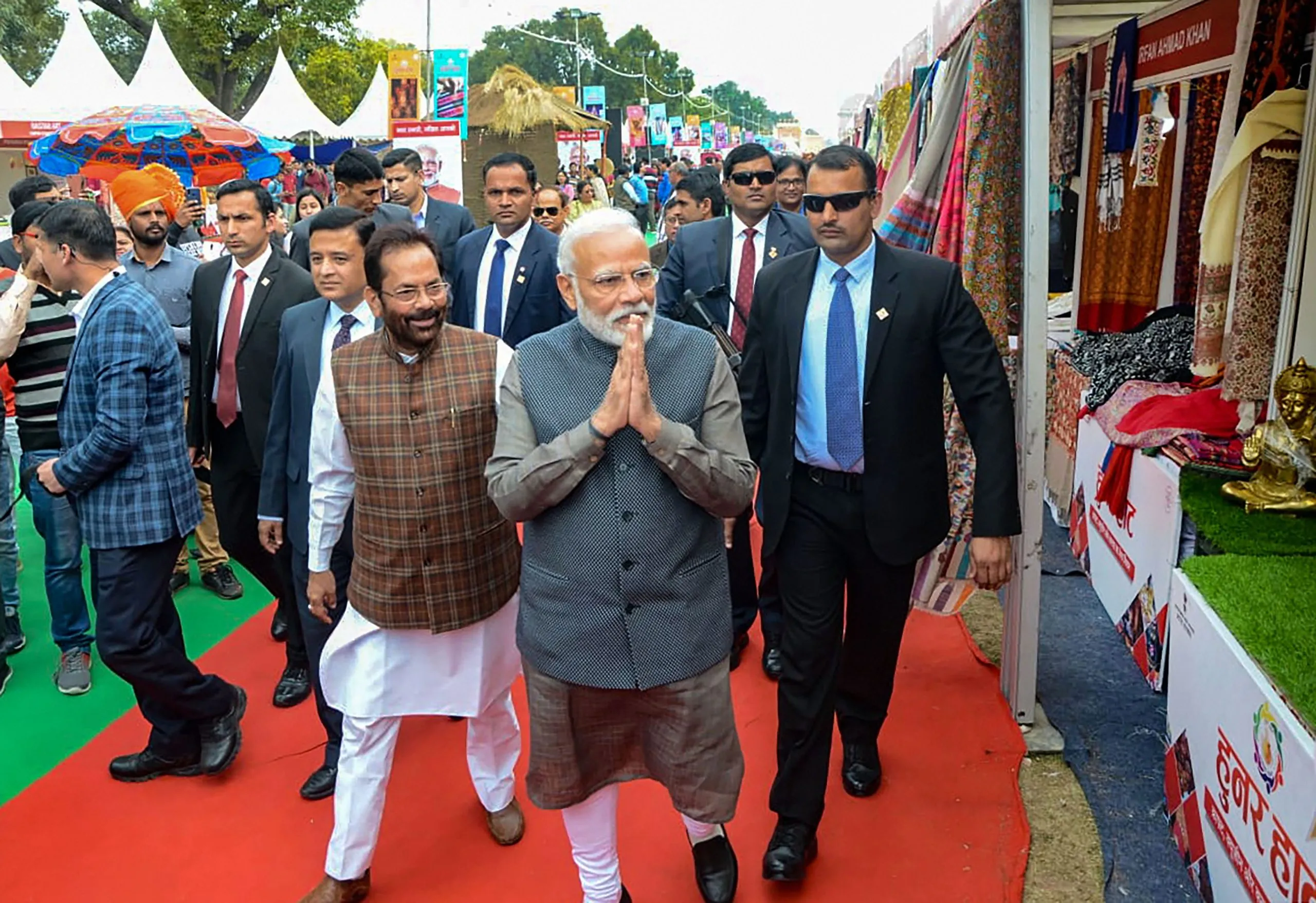 मोदींच्या दौऱयामुळे प्रदर्शनस्थळी कडेकोट बंदोबस्त ठेवण्यात आला होत. पण सर्वसामान्यांना मोदींशी बोलण्यापासून रोखण्यात आले नव्हते. पंतप्रधानांनी दुकानदार आणि कलाकारांशी चर्चा करत त्यांच्या कौशल्याची माहिती घेतली आहे. ‘कौशल्याला काम’ या ब्रीदवाक्यावर आधारित या प्रदर्शनात देशभरातून शिल्पकार, कारागिर आणि आचारी भाग घेत आहेत. यात 50 टक्क्यांपेक्षा अधिक महिला कारागिरांचा सहभाग आहे. 3 वर्षांमध्ये हुनर हाटच्या माध्यमातून सुमारे 3 लाख कारागिर, शिल्पकार आणि आचारींना रोजगार उपलब्ध करण्यात आला आहे. प्रदर्शनात 250 पेक्षा अधिक स्टॉल्स उभारण्यात आले आहेत. हुनर हाटचे आयोजन दिल्ली, मुंबई, प्रयागराज, लखनौ, जयपूर, अहमदाबाद, हैदराबाद, पुड्डुचेरी, इंदोरमध्ये झाले आहे. पुढील हुनर हाटचे आयोजन 29 फेब्रुवारी ते 8 मार्च या कालावधीत रांची येथे तर 13 ते 22 मार्चदरम्यान चंदीगड येथे होणार आहे.