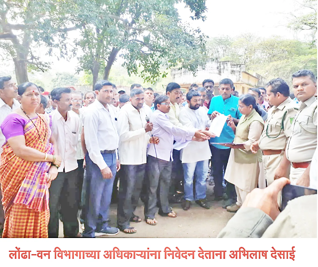 यावेळी लोंढा भागातील अनेक गावातून हजारो कार्यकर्त्यांनी लोंढा वन विभागाच्या कार्यालयासमोर एकच गर्दी केली व वनाधिकारी प्रशांत गौराणी यांच्या विरोधात घोषणाबाजी करत निषेध नोंदविला. मागील आठवडय़ातत जिल्हा पंचायत माजी सदस्य बाबुराव देसाई तसेच लोंढा वनाधिकारी प्रशांत गौराणी यांच्यात एका गावातील समस्यांवरून शाब्दिक वाद झाला होता. या वादातून गौराणी यांनी आपल्या कार्यालयात बोलावून बाबुराव देसाई यांना पिस्तूल रोखून जीवे मारण्याची धमकी दिल्याचा आरोप बाबुराव देसाई यांनी केला आहे. यावरून गेल्या चार दिवसात खानापूर तालुका भारतीय जनता पार्टीच्या पदाधिकाऱयांनी वनमंत्री तसेच पक्षाच्या वरिष्ठापर्यंत या प्रकरणाची तक्रार केली आहे. व तात्काळ सदर वन विभागीय अधिकाऱयाला निलंबित करून त्याच्यावर कारवाई करण्यात यावी व तालुक्मयातून त्याला अन्यत्र बदली करावी, अशी मागणी करण्यात आली आहे.