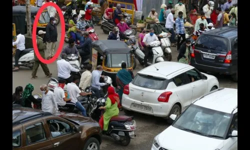 गणेशोत्सवाला सूरूवात झाली असून शहरातील मोती चौक ते 501 पाटी या मार्गावर वाहतूक कोंडी वाढत आहे. तासभर वाहने अडकून पडत असताना ही कोंडी सोडवण्याकडे वाहतूक पोलिस दुर्लक्ष करत आहेत. होमगार्डला सूचना करत वाहतूक पोलीस कागदपत्रे तपासत आहेत.