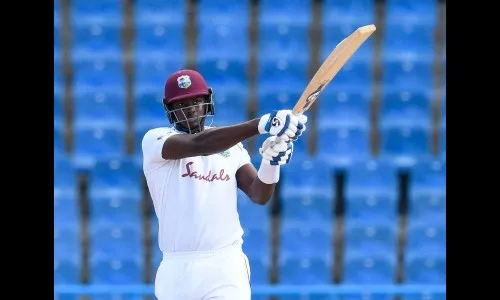 संक्षिप्त धावफलक ः विंडीज प. डाव सर्वबाद 354, लंका प. डाव 107 षटकात सर्वबाद 258, विंडीज दु. डाव 72.4 षटकात 4 बाद 280 डाव घोषित (बेथवेट 85, कॅम्पबेल 10, ब्लॅकवुड 18, मेयर्स 55, होल्डर नाबाद 71, डिसिल्वा नाबाद 20, लकमल 2-62, चमिरा 2-74). लंका दु. डाव 9 षटकात विनबाद 29 (थिर्मेनी खेळत आहे 17, करुणारत्ने खेळत आहे 11).