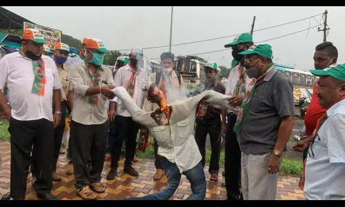 काँग्रेसचे कार्यकर्ते जेव्हा भाजपच्या कार्यालयासमोर दामू नाईक यांची प्रतिमा घेऊन आले. तेव्हा, फातोर्डाचे पोलीस निरीक्षक कपिल नायक यांनी त्यांना कार्यालयासमोर प्रतिमेचे दहन करण्यास आक्षेप घेतला. यावेळी निरीक्षक कपिल नायक व काँग्रेस कार्यकर्त्यांमध्ये बराच वेळ बाचाबाची झाली. पोलीस भाजपचे कार्यकर्ते आहेत का ? असा सवालही उपस्थितीत करण्यात आला. मात्र, निरीक्षक कपिल नायक यांनी कोणत्याही परिस्थितीत प्रतिमेचे दहन भाजप कार्यालयासमोर करण्यास ठाम वि्1022ारोध दर्शविला. रस्त्याच्या दुसऱया बाजूला किंवा अन्य कुठेही दहन करा असे श्री. नायक म्हणाले. शेवटी मडगाव कदंब बस स्थानकाजवळच्या फुटपाथवर दामू नाईक यांच्या प्रतिमेचे दहन करण्यात आले.