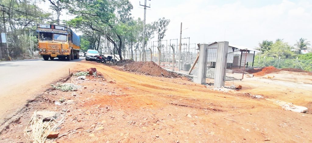 ग्रामीण भागातील रहिवाशांना चांगल्या सुविधा उपलब्ध करून देण्याच्यादृष्टीने चांगली पावले उचलण्यात आली आहेत. पण चांगल्या सुविधा उपलब्ध करताना गैरसोयी निर्माण करण्यात आल्याने वाहनधारकांना धोकादायक बनले आहे. अनावधानाने वाहन रस्त्याखाली गेल्यास जीव गमावण्याची वेळ आली आहे. हेस्कॉमने विद्युत पुरवठा उपकेंद्र निर्माण केले असून, उपकेंद्राची उभारणी करताना उपकेंद्राकडे जाण्यासाठी प्रवेशद्वार बनविण्यात आले. याकरिता रस्ता करताना बेळगाव-वेंगुर्ला रस्त्याशेजारी खोदाई करण्यात आली आहे. यादरम्यान रस्त्याशेजारी साईड पट्टीची माती हटवून दीड फूट खोल खोदण्यात आले आहे. प्रवेशद्वाराचे बांधकाम करताना रस्त्यालगत लोखंडी सळी लावण्यात आली आहे. प्रवेशद्वाराचे काम पूर्ण झाले. उपकेंद्राची चाचणी करून सुरू करण्यात आले. मात्र, अद्यापही लोखंडी सळी ‘जैसे थे’च आहे. तसेच बेळगाव-वेंगुर्ला रस्त्याशेजारच्या साईडपट्टीवर माती घालण्यात आली नसल्याने खोदाई केलेला रस्ता धोकादायक बनला