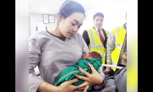 दोहय़ाहून बँकॉक येथे जात असलेल्या एका विमानाचे मंगळवारी सकाळी कोलकाता येथील डमडम विमानतळावर आपत्कालीन लँडिंग करविण्यात आले. कतार एअरवेजच्या या विमानातील एका प्रवासी महिलेला प्रसुतीवेदना सुरू झाल्या होत्या. या महिलेने विमानातच एका मुलाला जन्म दिला आहे. विमान भारतीय हवाईहद्दीत असताना ही घटना घडली आहे.