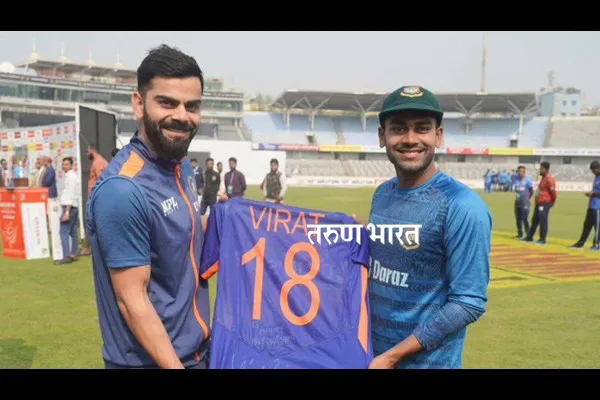 भारतीय संघातील हुकमी आणि अनुभवी फलंदाज तसेच माजी कर्णधार विराट कोहलीने बांगलादेशचा अष्टपैलू मेहदी हसन मिराझला खास भेट दिली आहे. विराट कोहलीने आपली स्वाक्षरी केलेली जर्सीवर मेहदी हसनला दिली आहे.