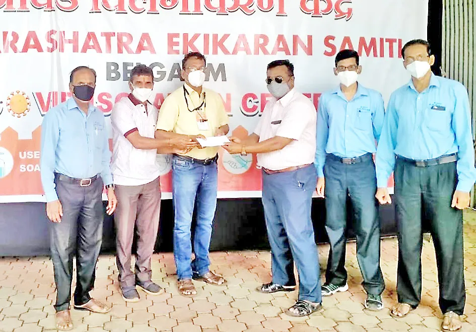लोकसहभागातून म. ए. समितीने आयसोलेशन सेंटर सुरू केले होते. त्याला मदतीचा हात दिला जात आहे. तुकाराम बँकेचे ज्येष्ट संचालक प्रदीप ओऊळकर यांनी निधीचा धनादेश मदन बामणे यांच्याकडे सुपूर्द केला. यावेळी व्यवस्थापक संकोच कुंदगोळकर, बाळू जोशी, परिन जाधव, प्रताप जाधव उपस्थित होते.