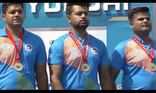 पुरूषांच्या सांघिक कंपांऊंड तिरंदाजी प्रकारात भारताच्या अभिषेक वर्मा, रजत चौहान आणि अमन सैनी यांनी शानदार कामगिरी करताना फ्रान्सचा 174-173 अशा केवळ एका गुणाने पराभव करत सुवर्णपदक पटकाविले.
